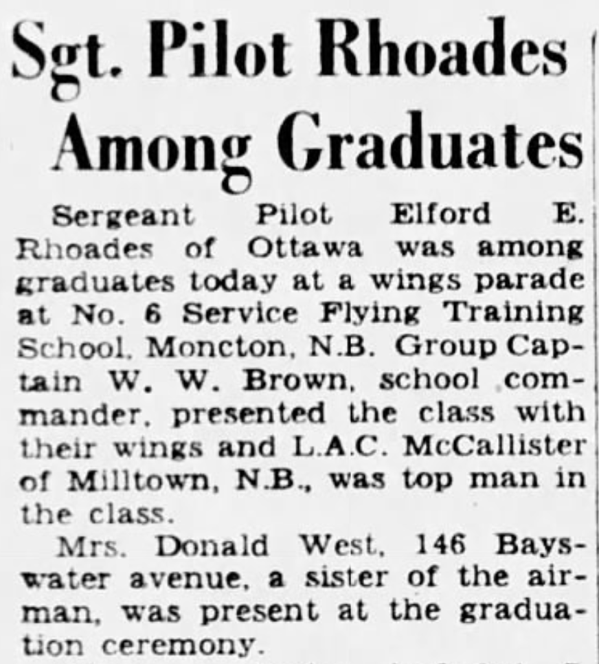 Mrs. Donald West, 146 Bayswater avenue, a sister of the airman, was present at the graduation ceremony.”
