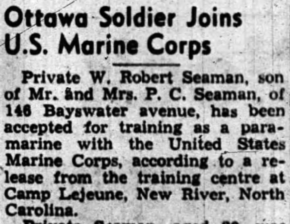 W. Robert Seaman is accepted as a paramarine - Apartment 3