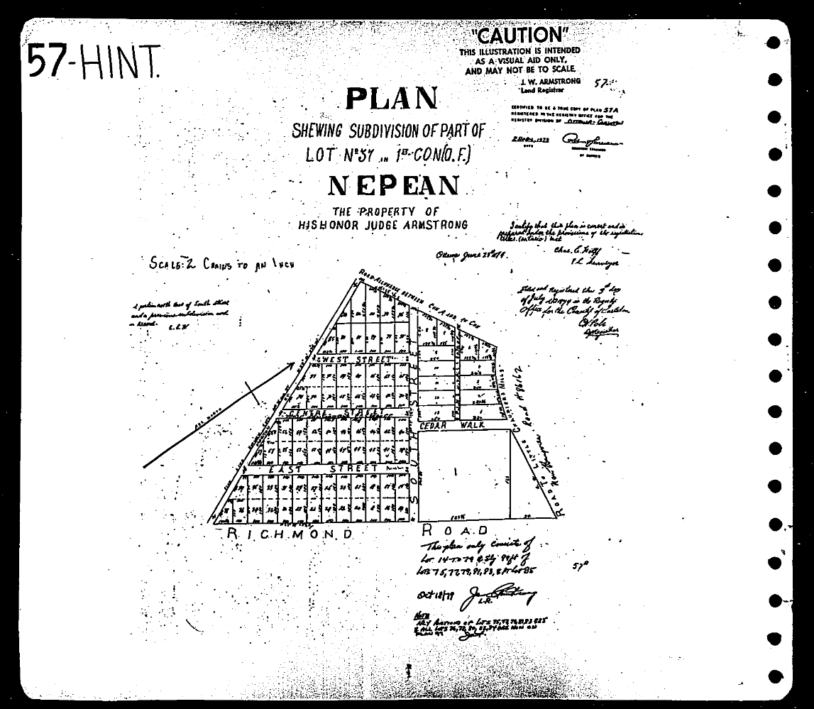 It is remarkable how consistent the general layout of the original subdivision has remained from 1874 until today. Besides Merton Street and Richmond Road, the streets went by different names: the appropriately named “west”, “centre” and “east” streets, and “Cedar Walk” (today's O’Meara) and “Pine Alley” (today's Hilda). Plot “1” - the location of the Armstrong estate - explains why “East Street” (today’s Armstrong) did not yet extend further east as it does today. The street names of “Cedar Walk” and “Pine Alley” still reflect the rural and idyllic natural character of the site even as industry crept in. What is today Bayview is simply listed as “Road to Little Chaudiere Mill’s,” and speaks to the number of smaller lumber mills, such as that of William Mason, that operated out of Mechanicsville away from the larger “lumber barons” of J.R Booth and E.B. Eddy on the Chaudiere.