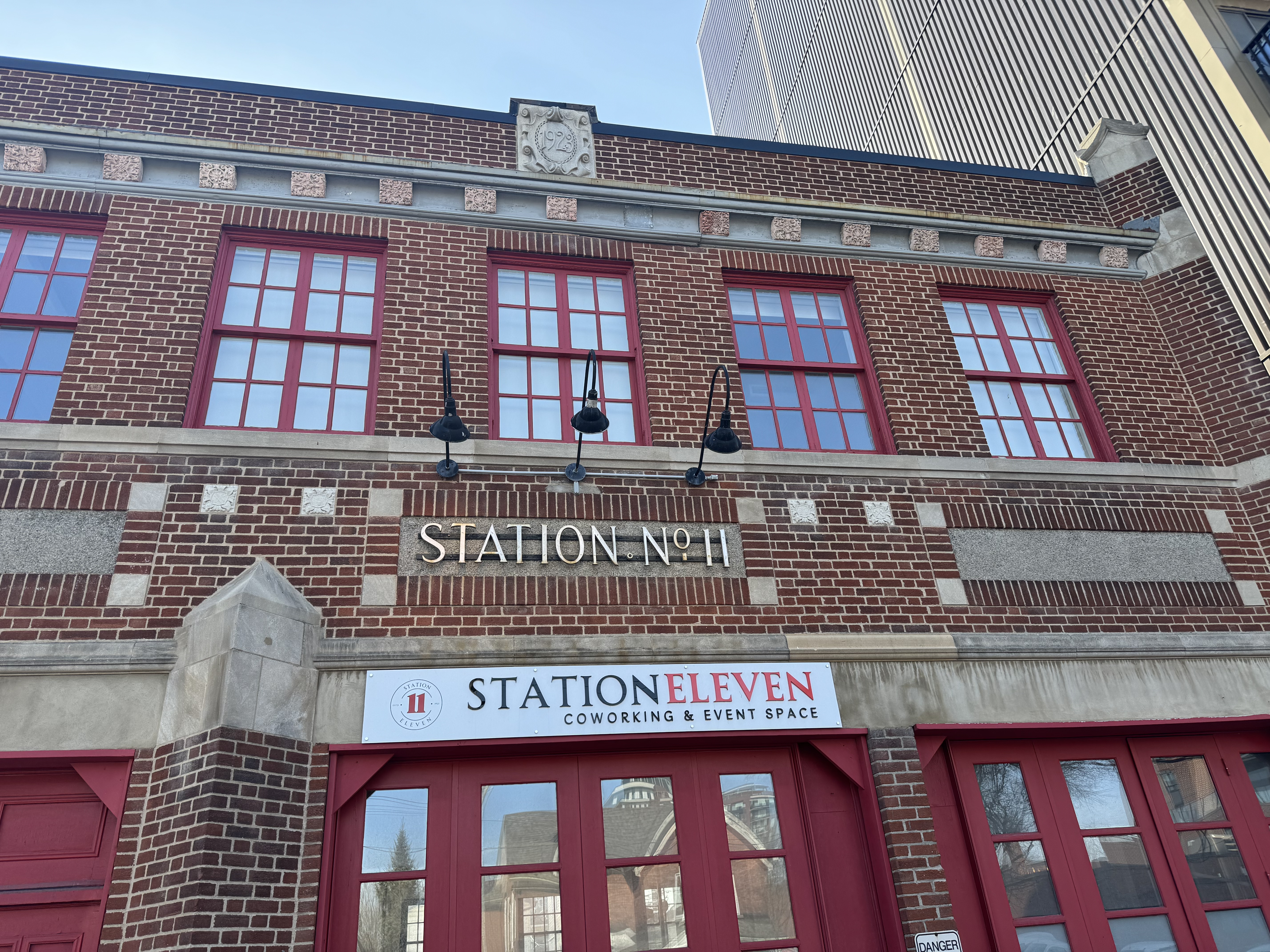 The design of Fire Station No. 11 by the Ottawa architectural firm Millson, Burgess, and Hazelgrove exemplifies a rare fusion of utilitarian function and civic grandeur, reflecting the Modern Classical style that dominated early 20th-century municipal architecture. Completed in 1924, the two-storey red-brick structure features a four-storey hose-drying tower at its rear, a defining pre-1930 technological innovation. The façade, laid in a robust Flemish bond pattern, is accented with smooth limestone trim that underscores its civic importance. A broad stone band horizontally separates the first and second storeys, while a stone stringcourse runs beneath the second-floor windows, punctuated by stylized stone brackets supporting the cornice. These decorative elements contrast sharply with the plain brick warehouses of Hintonburg, elevating the station’s role as both a public institution and neighborhood landmark. Above the central bay, bold cast-iron lettering (“STATION NO. 11”) declares its identity, a flourish uncommon in firehouses of the era.