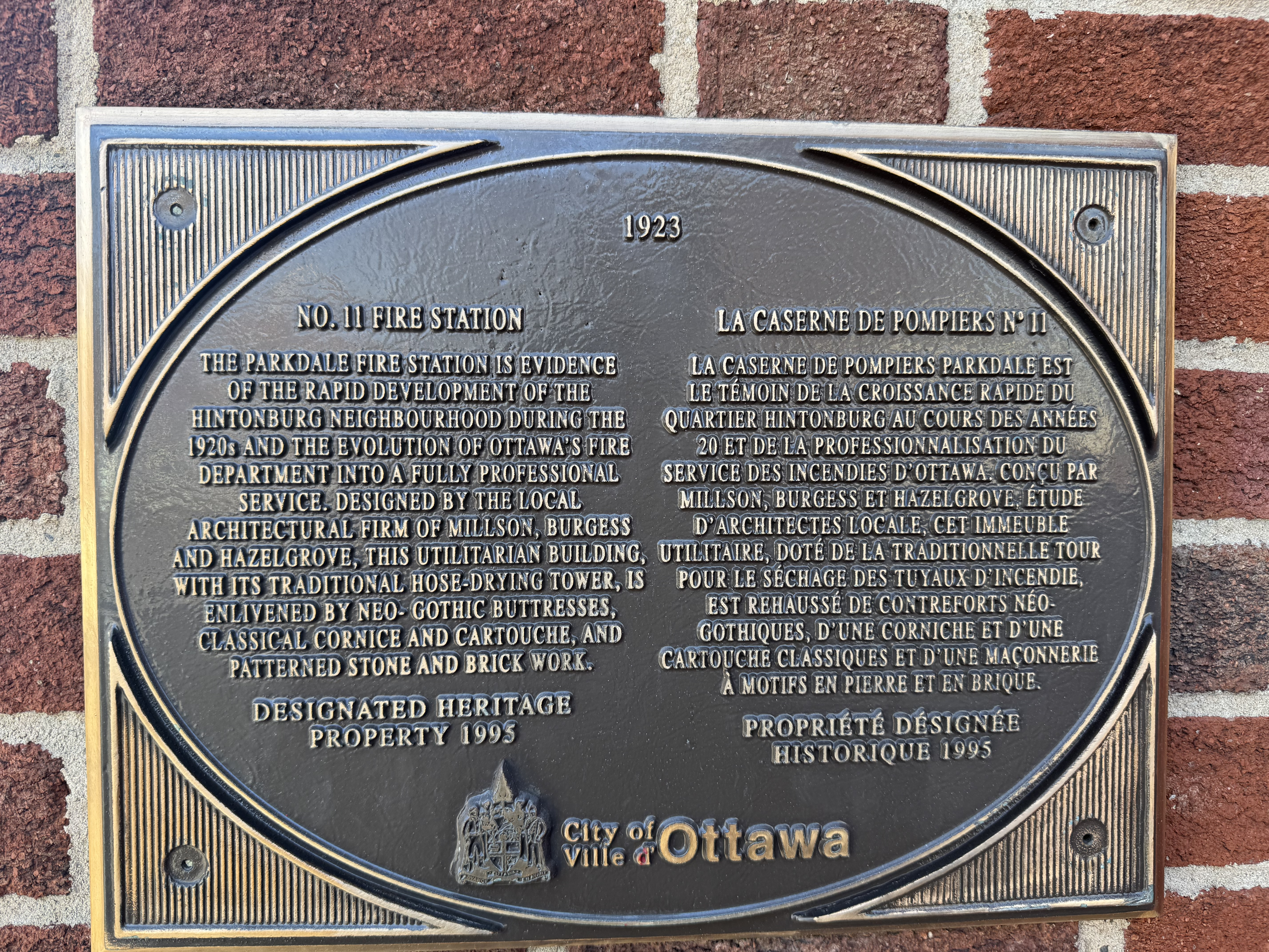 Though the interior is excluded from heritage designation, the exterior’s meticulously crafted details, from the rusticated stone trim to the rhythmic brickwork, reflect a commitment to merging civic duty with architectural beauty. Preserved through its 1996 heritage designation, the station stands as one of only three pre-1930 fire stations remaining in Ottawa, alongside Station No. 5 (1890) and Station No. 10 (1921). The City of Ottawa’s designation report lauds it as “a sophisticated example of adaptive design,” where aesthetics and utility coexisted to serve firefighters and the public alike. Today, its unique blend of Modern Classical elegance and functional ingenuity cements its status as a cornerstone of Hintonburg’s built heritage.