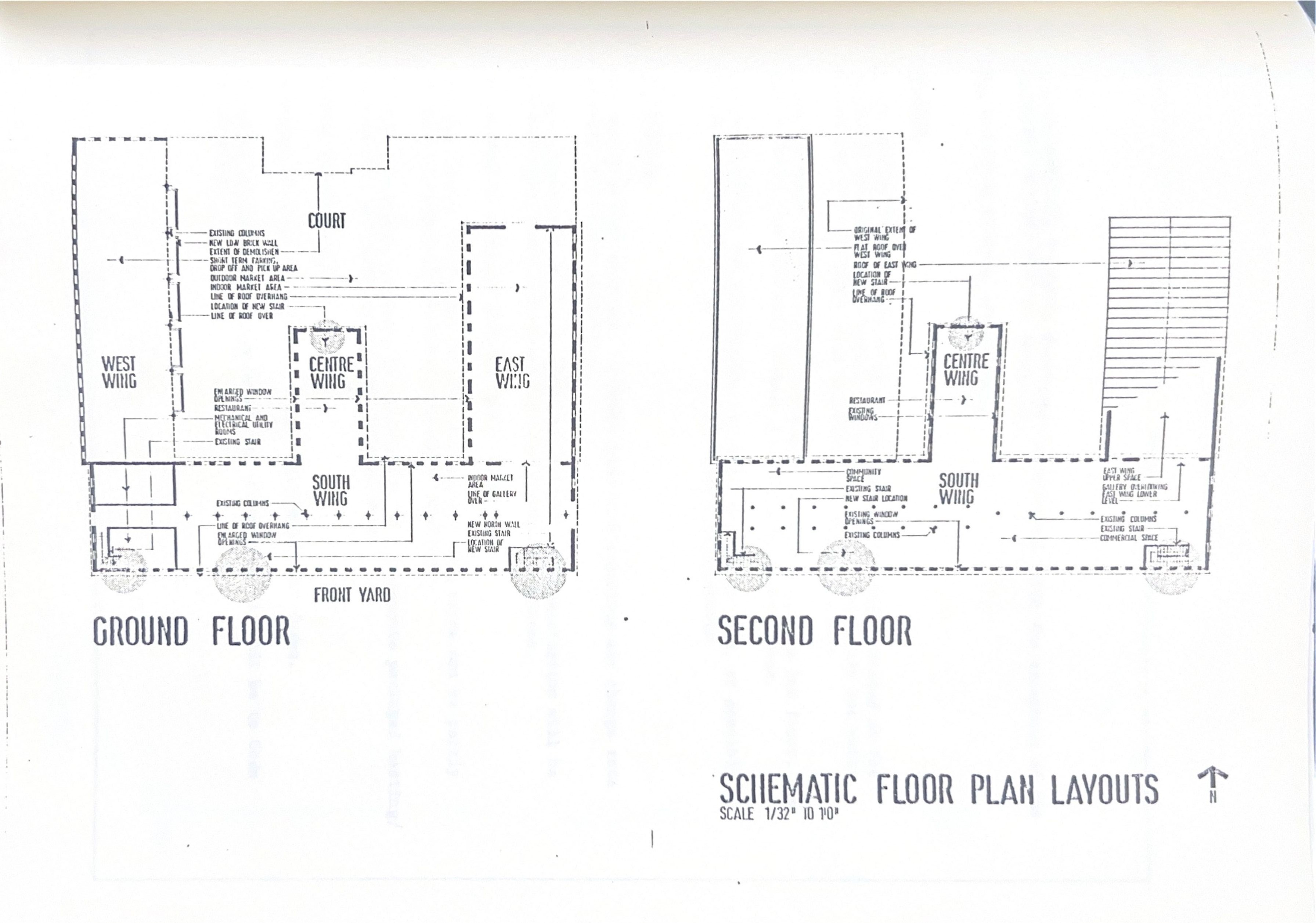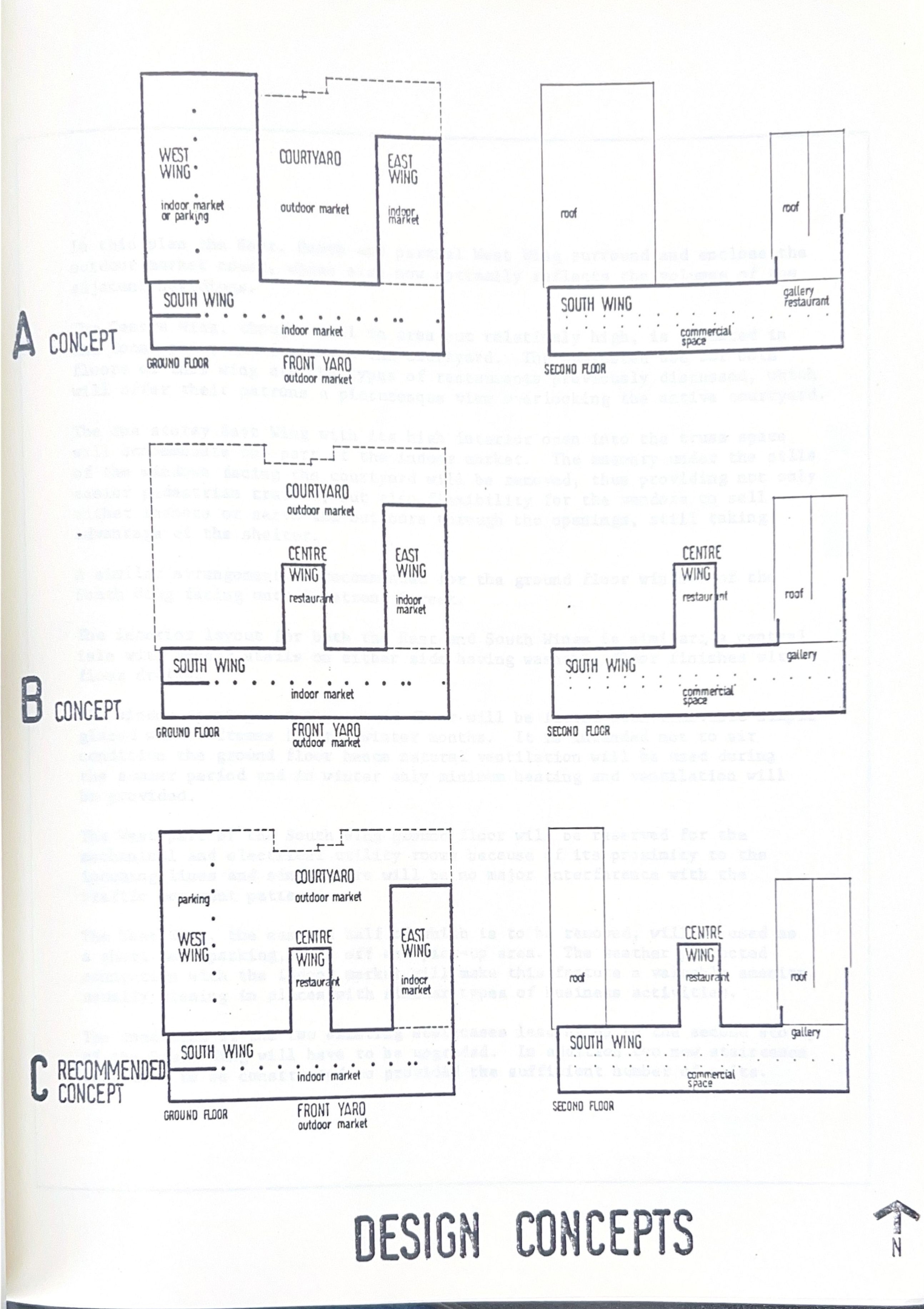 Following the closure of manufacturing facilities in 7 Hinton Avenue, the space was still used by the Capital Wire Cloth Company for some time. After a ‘Ottawa West Neighbourhood Study’ was conducted at some point in the mid-1970s, there was a recommendation to redevelop and revitalize certain areas bounded by Holland Avenue, Scott Street, Parkdale Avenue and Wellington Street. This coincided with the closure of industry in the area, such as The Beach Foundry, which was directly north of the Wire Cloth Factory. The City of Ottawa turned their eyes to the Capital Wire Building, as it ceased manufacturing operations, and proposed it become a site of a year round indoor/outdoor market building.This plan was named the Indoor / Outdoor Parkdale Market Architectural Feasibility Study, and was conducted by Stephen Katz associates. The plan delves into imagined possibilities of the space, but also offers an analysis of the existing building.