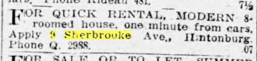 Many of the houses on Sherbrooke, and much of the area around it, would be built when streetcars, water service, and schools arrived and increased demand around WWI.